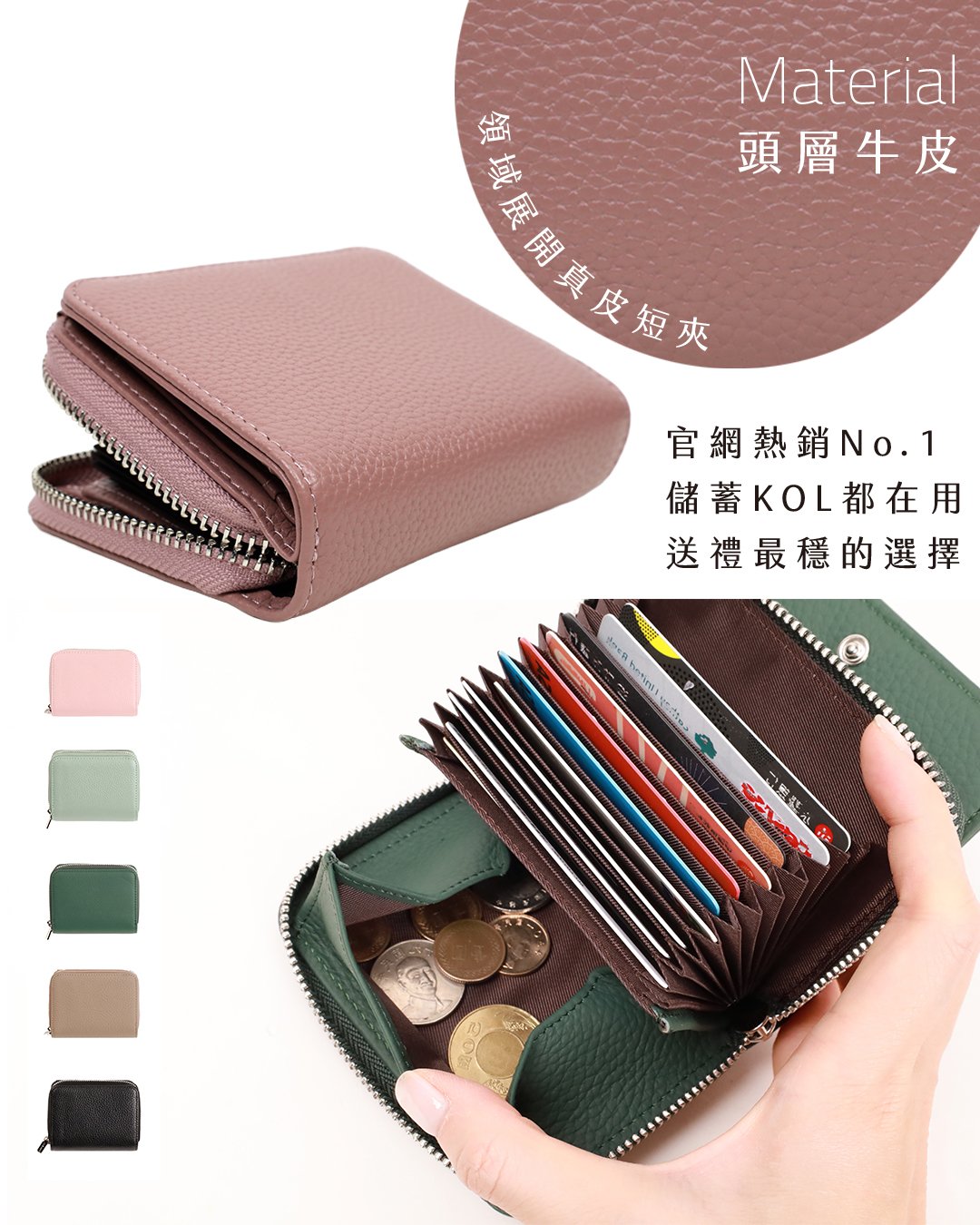 霧彩壓扣荔枝紋真皮長夾(多色)