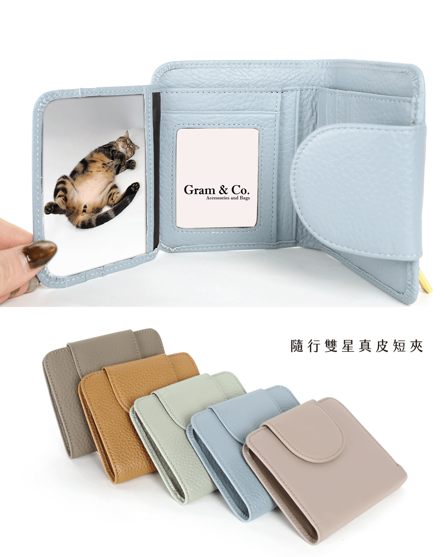 光面真皮扣帶皮夾包-多色