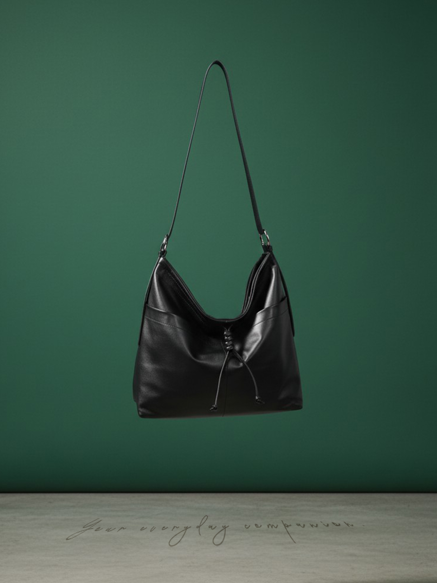 TRueSo 觸柔牛皮綁結肩包-黑色