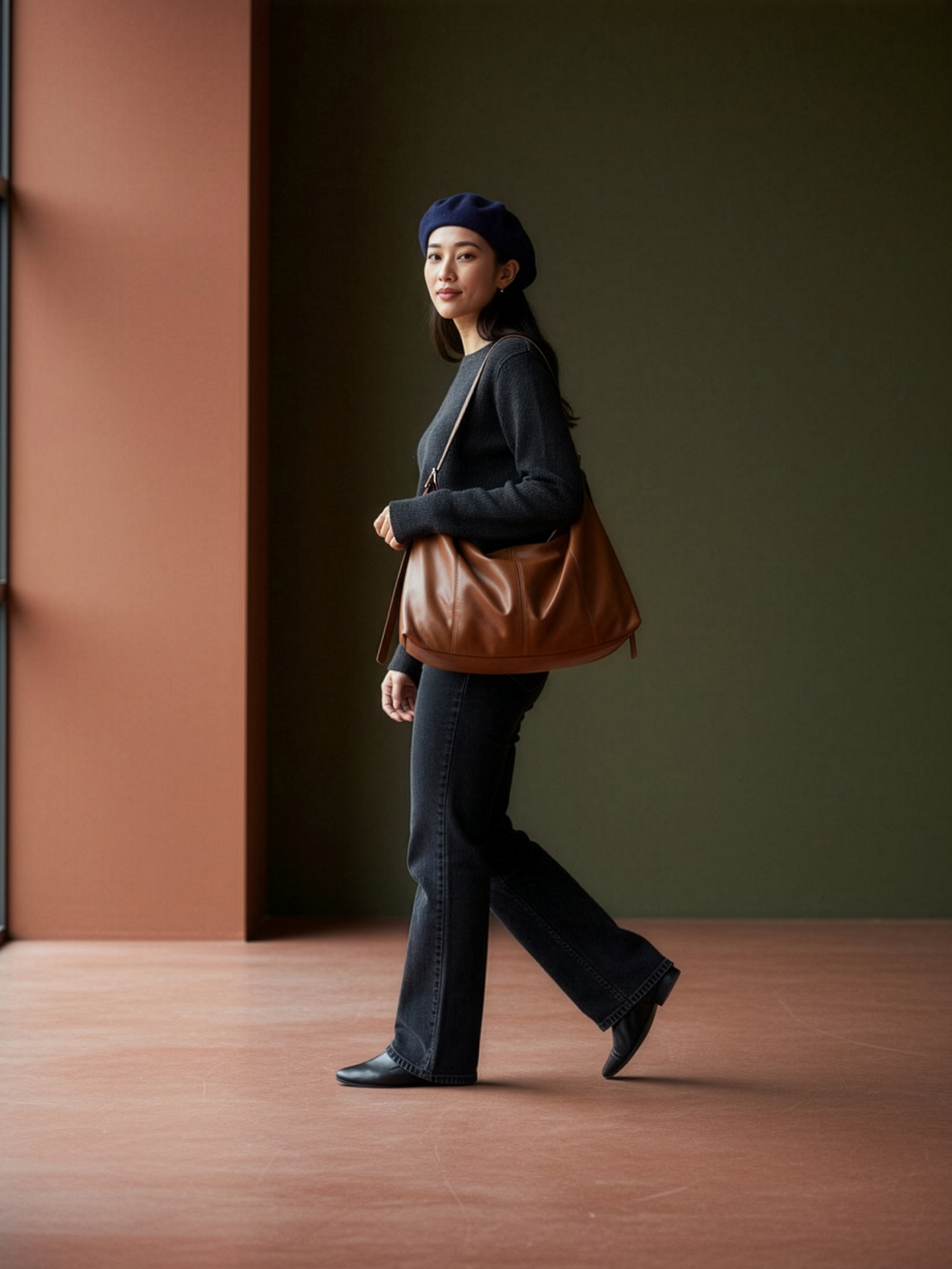 Étoffe|伊朵芙真皮柔雲肩包-黑色