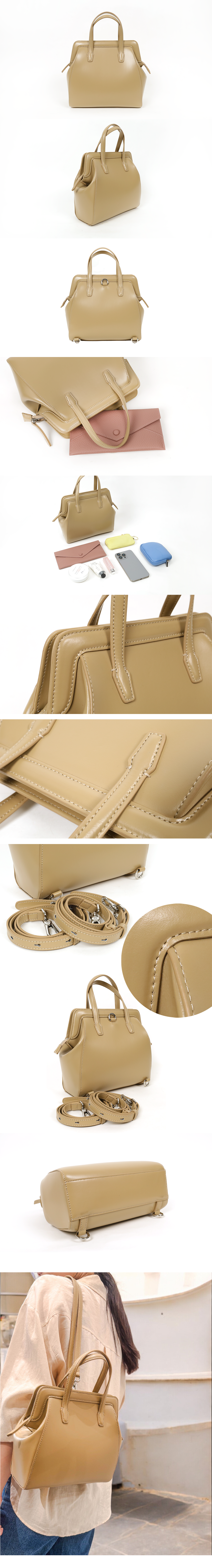 這款真皮包設計簡約優雅,採後揹與側揹可交替使用設計,兼具實用與時尚。柔和色調與俐落線條,展現低調自信的日常風格。