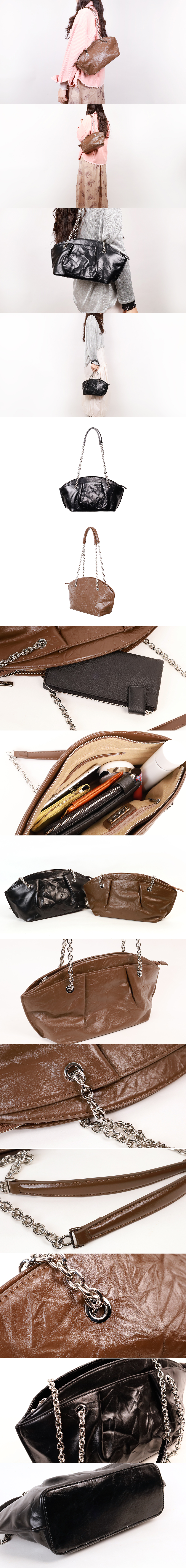 油蠟真皮褶皺側肩鍊包(多色)