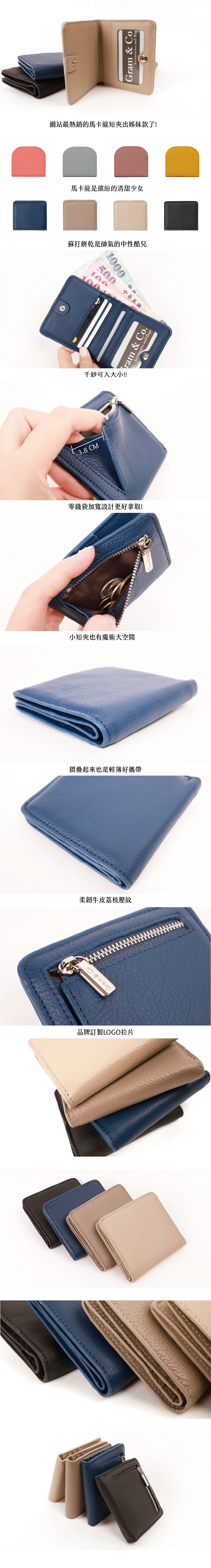 蘇打餅乾真皮短夾(多色)