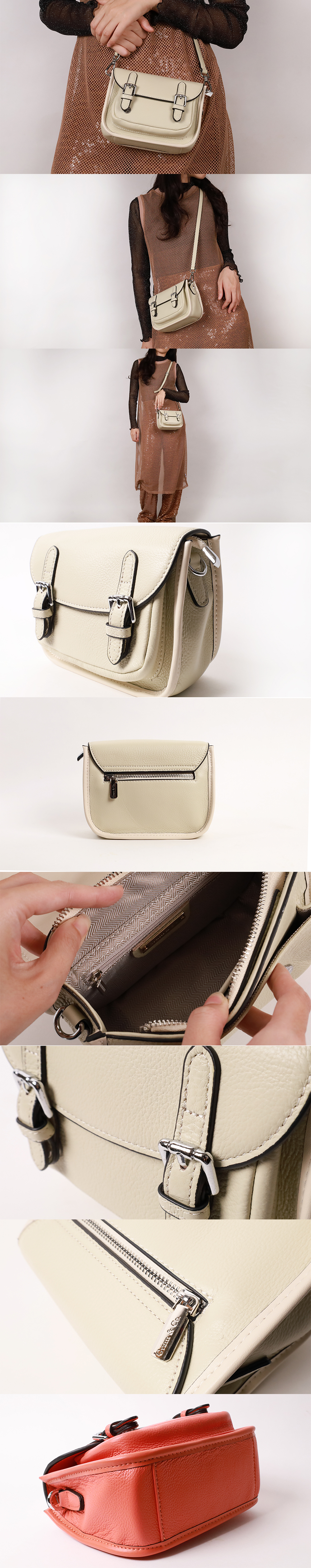 霜白學院真皮側背包