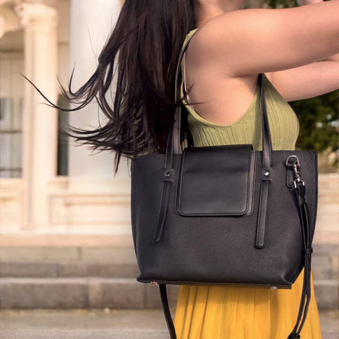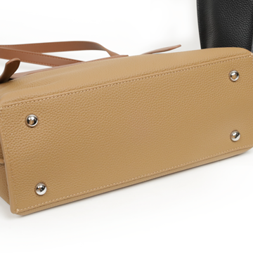 以溫潤焦糖與奶茶雙色拼接,展現低調的秋日詩意。嚴選細緻真皮製作,觸感柔軟卻挺立有型。可肩背亦可側背,無論是日常通勤還是週末出遊,都能輕鬆展現知性與隨性的平衡魅力。