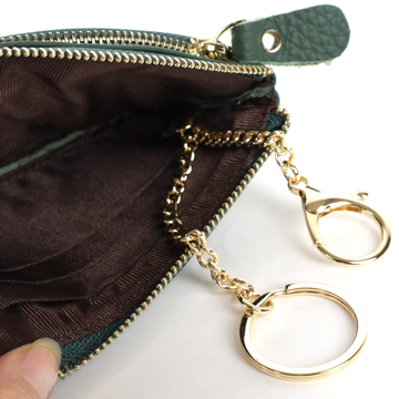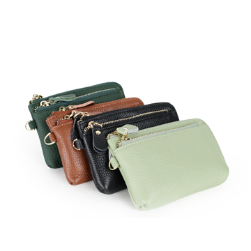 以細緻真皮打造,柔韌手感隨時間愈顯質感。雙層拉鍊設計,分類收納零錢、卡片與隨身小物,取用俐落不混亂。俐落比例搭配可拆式手腕帶,無論城市通勤或短途旅行皆輕巧隨行,低調卻耐看,是日常與旅途之間最剛好的收納選擇。
