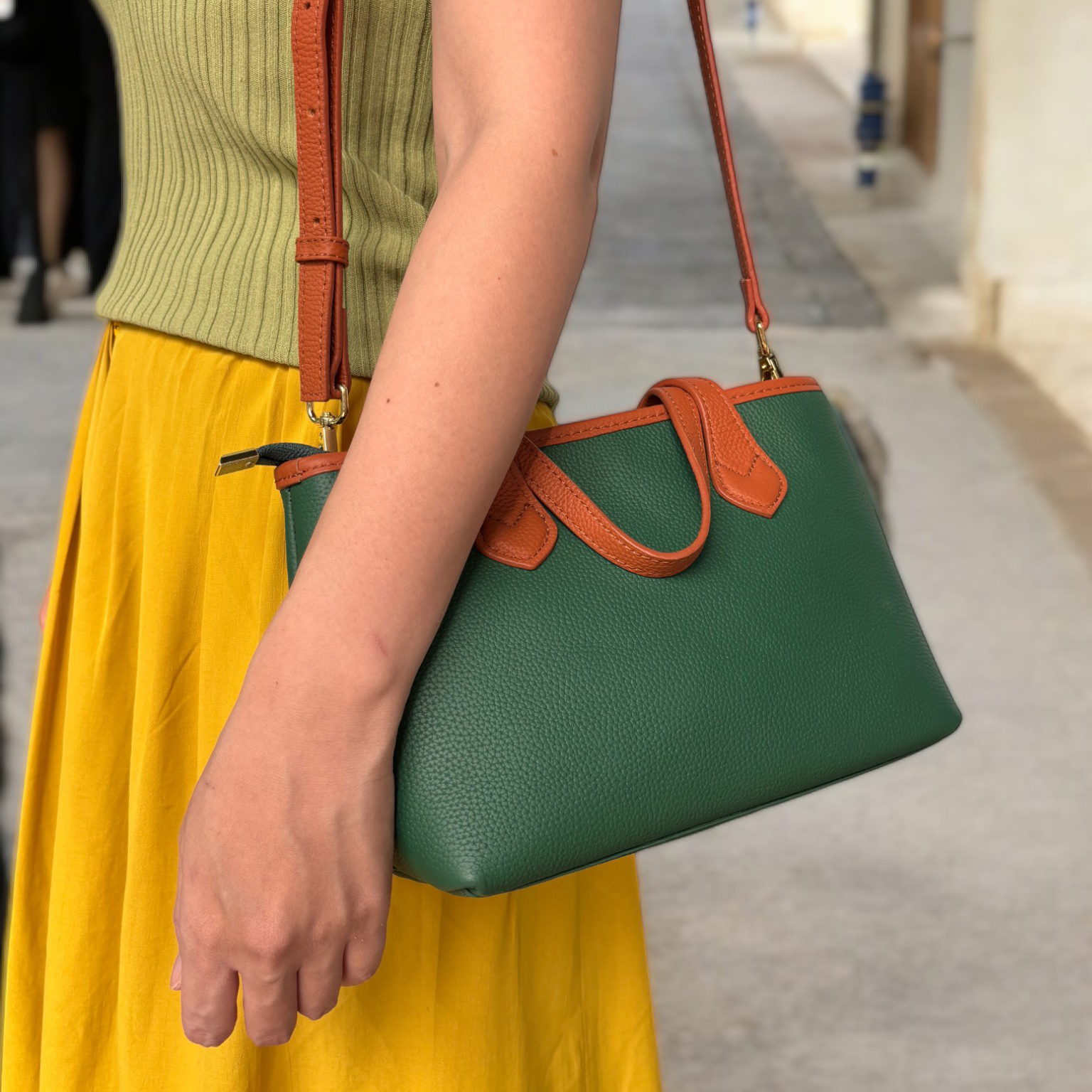 Verdant 真皮撞色托特提/肩包